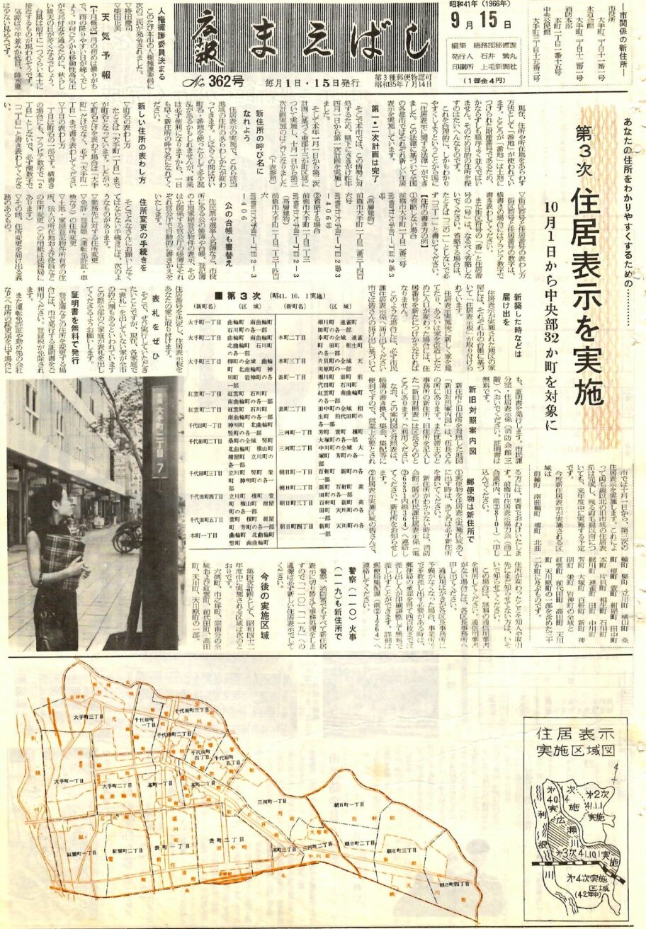 前橋市の旧町名は1962年に施行された「住居表示に関する法律」に基づき、1965年から1967年にかけて段階的に現在の町名に変更された。