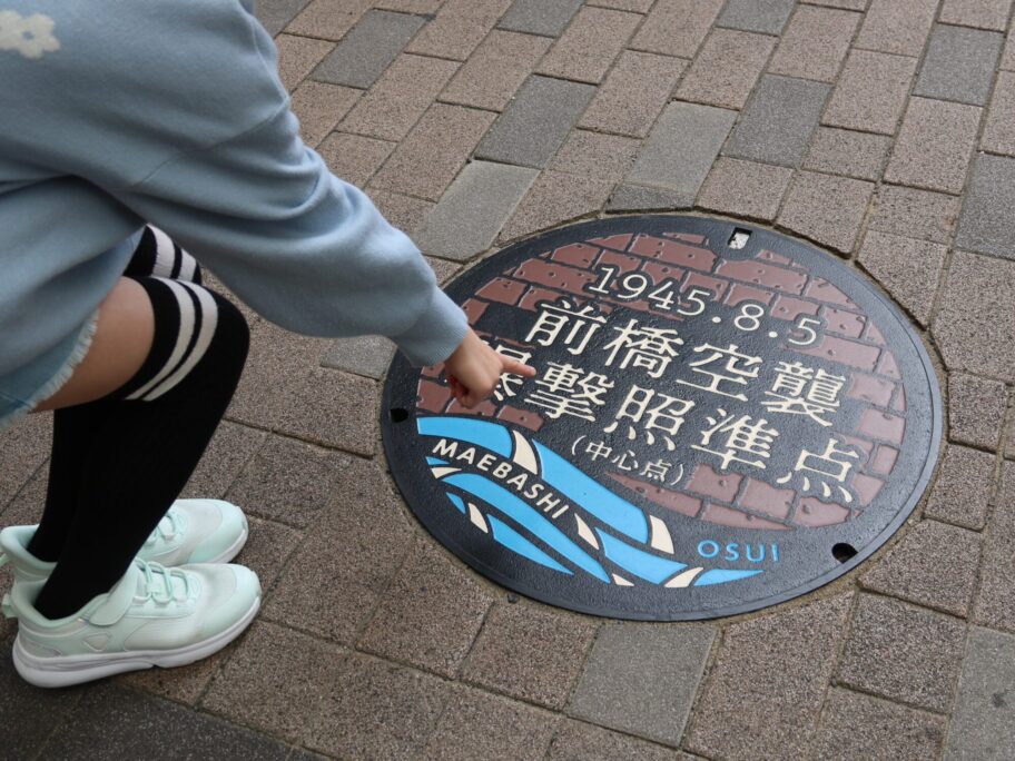 ▲中央通りにある前橋空襲爆撃照準点マンホール