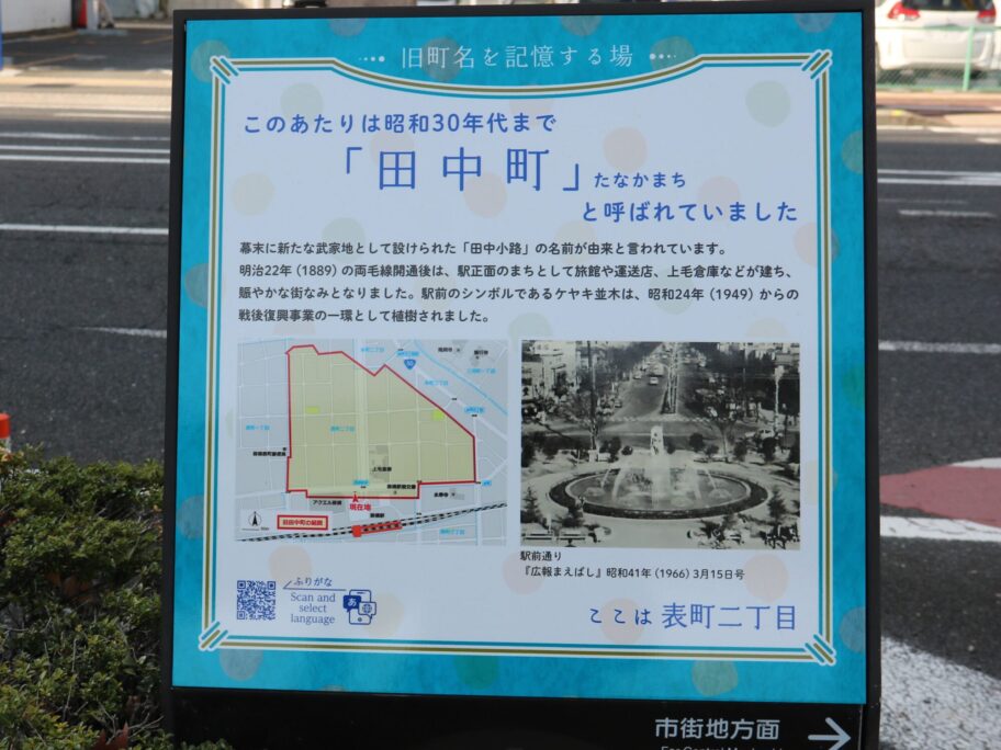 幕末に新たな武家地として設けられた「田中小路」が町名の由来。1889(明治22)年の両毛線開通後は旅館や運送店、上毛倉庫が建ち並んだ。駅前のシンボル、ケヤキ並木は1949(昭和24)年からの戦後復興事業として植樹された。