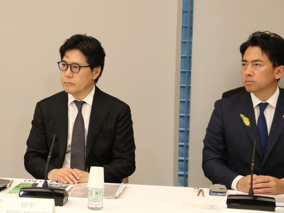 ▲官邸での会議に出席した田中氏。右は小泉進次郎農相