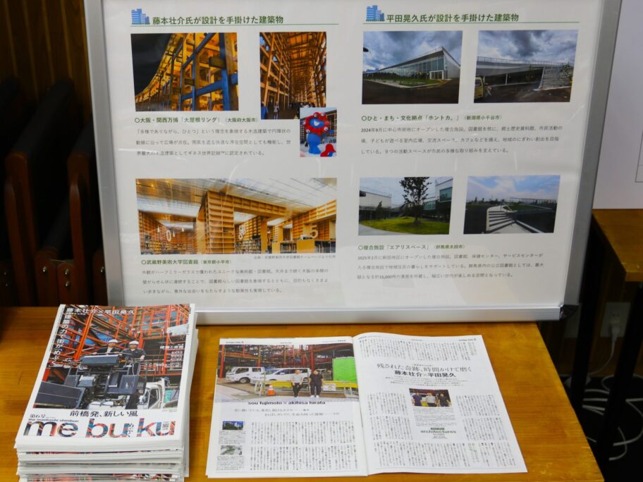 ▲藤本、平田両氏を特集した前橋新聞me bu kuを配布している