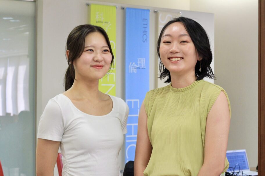 ▲小林さん(右)と、ボランティアに名乗りをあげた後輩