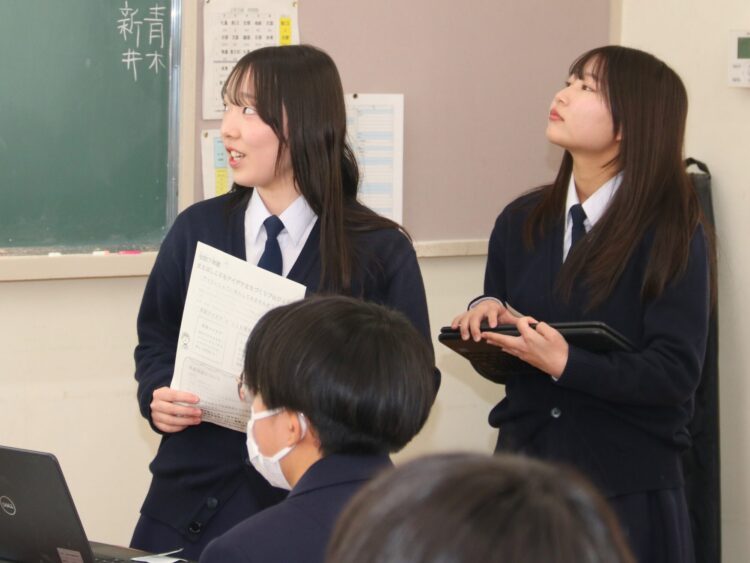 前橋南高校は2023年度から県教委の「SAH(Student Agency High School)」指定を受け、「自ら考え、判断し、行動できる生徒」の育成を目指し、探求に力を入れている。入学時から探究の授業を受けている2年生は自ら課題を設定、情報を取集するとともに、昨年12月には自治体や企業、団体に出向いて、専門家に取材して発表会に備えた。