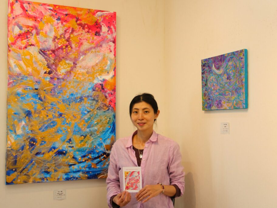 自然からインスパイアされた溢れる色彩と曲線を多用したアクリル絵画制作を手掛ける中林可寶さん(前橋市)の新作を集めた個展「春風~Harukaze~」が4月12日、ギャラリーあーとかんで始まった。自然の芽吹きや生命の息吹を感じられる明るい色調の抽象画26点が並んでいる。20日まで。