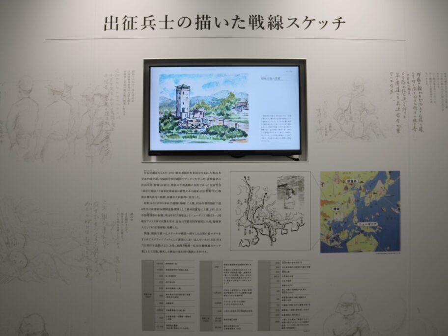 戦線スケッチを描いた住谷完爾さんは戦後、スケッチ集を制作、戦死した戦友の家を訪れ、遺族に手向けた。手島さんは「戦争で生きて帰った人は何らかの形で区切りを付けたかったのだろう」と心情を読み解く。