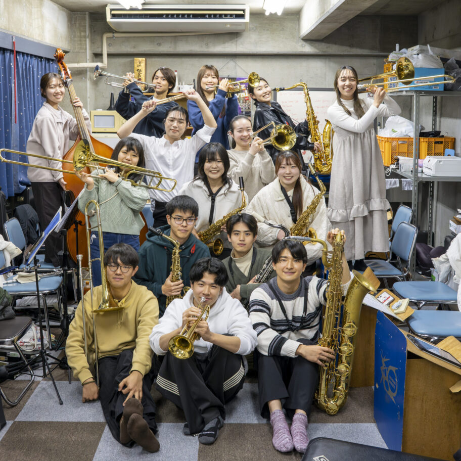 23人の部員が所属する全学によるビッグバンドサークル。力強さと華やかさを兼ね備えた演奏が持ち味で、学年を超えた仲の良さをうかがい知れるハーモニーが心地よい。OBOGを交えた演奏会を含めて年に10回以上のライブを開く。