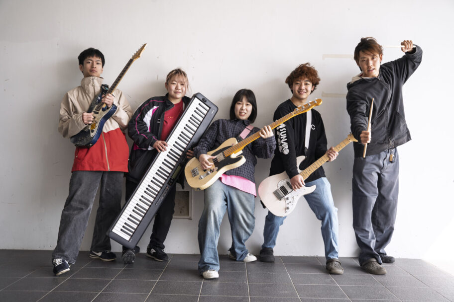 「昔のアニソンやR&Bなど学生バンドで手掛けることの少ないジャンルを試したい」。前橋、高崎、桐生などのライブハウスでも活躍中。メンバーは谷地舘颯斗、徳武直樹、信岡宏太朗、城鼻健太、久保田峻介。