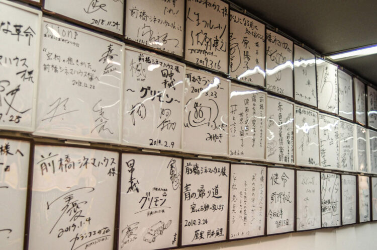 ▲館内には舞台挨拶などで訪れた関係者のサインが多数並ぶ。