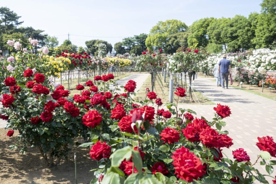 敷島公園のばら園は世界の殿堂入りが全種類そろい、600種、7000株のバラがある。