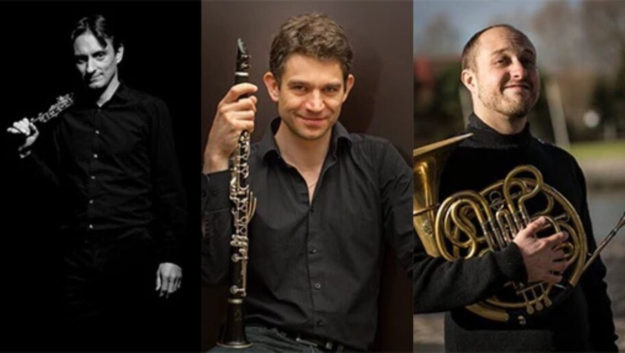 ▲写真左からオーボエのフィリップ・ジョルジさん、クラリネットのアレクサンドル・シャボさん、ホルンのブラディミール・デュボウさん