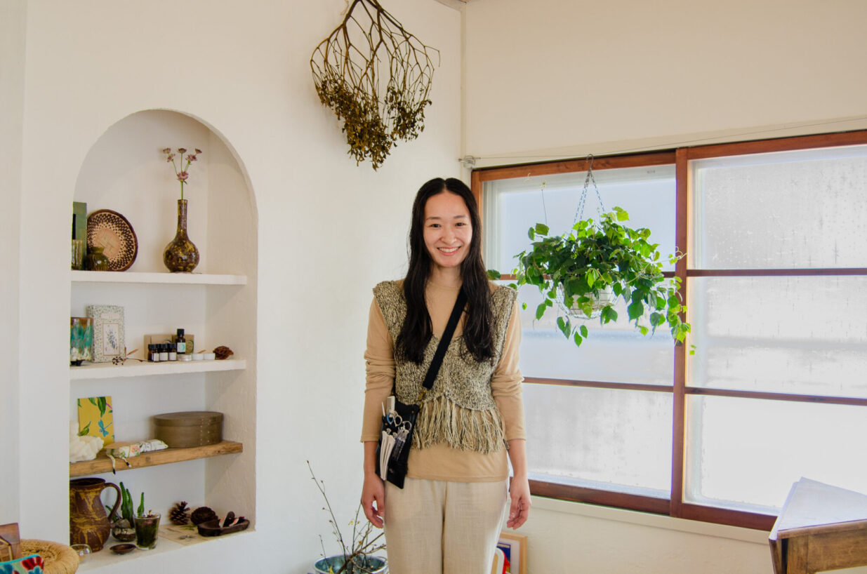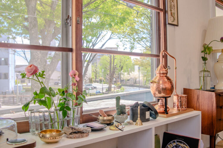 まちなかを流れる広瀬川の上流。河畔沿いの2階に店舗を構える「hiyuka」は、健康的な美しさをコンセプトに、身体や環境に配慮した施術を行う美容室だ。満面の笑みで出迎えてくれた店主・中村彩さんは前橋の出身。県内の美容学校を卒業し、高崎のサロンに勤めたのち24年に独立。美容師歴20年以上のプロフェッショナルだが、ケミカルな薬剤に対しては疑問を抱いていたという。腸の病を患っていた20代の頃、投薬による治療を1年ほど続けたものの身体に合わず、リフレッシュの為に訪れたフランスでハーブ薬局という存在を知り、植物の近くで病気を未然に防ぐ予防医学に感銘を受けたという。仕事や育児の傍ら、アロマセラピーや、インドスリランカの伝統医学アーユルヴェーダなど様々な自然療法を学び、食生活を根本から見直してからは、たちまち症状は改善していったという。そんな自身の経験から、心からリラックスできる店作りに思いを巡らせていった。「静かな川沿いの2階が良い」と、構想から約10年。自身の闘病や、薬品に敏感な年頃の育児など、経験をもとに身体に負担の少ないものを選択していく事で、自然派由来の美容室となった。静かな河畔沿いの美容室で、心と身体に休息を与えたい。
