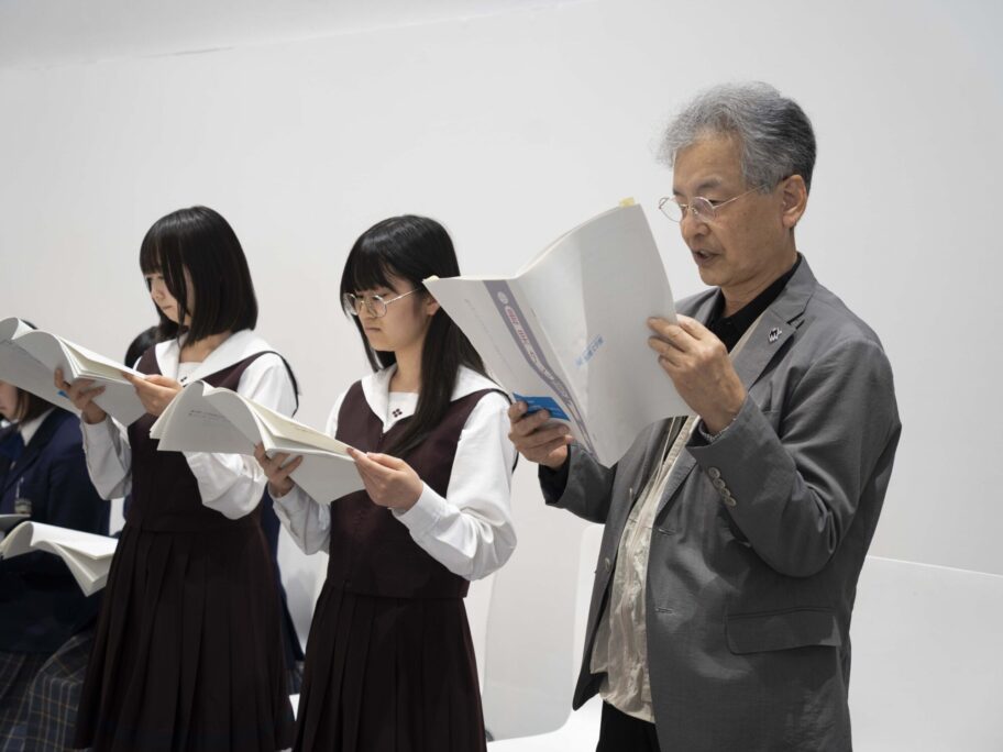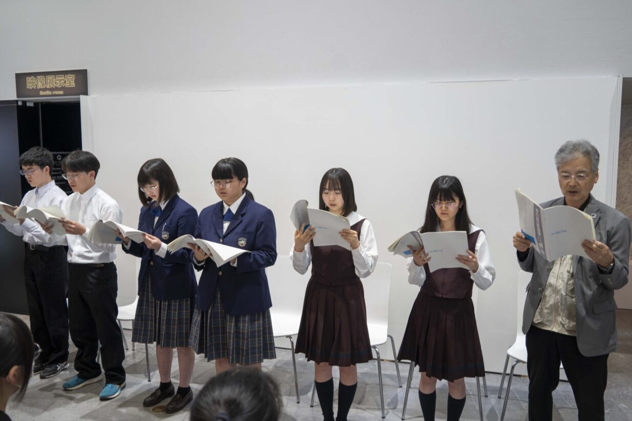 想いを込めて、時には優しく、時には力強く詩を吟じる高校生たち。「耳にリンリンと鈴の音が響くように涼やか」と共に朗読を行った朔美特別館長。