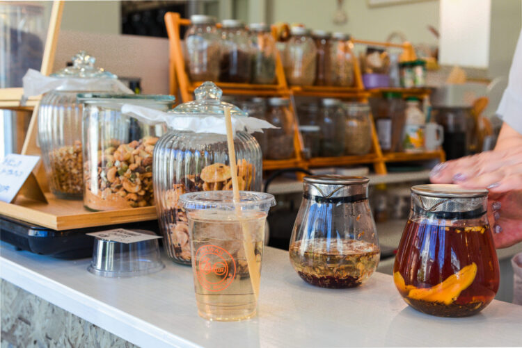 扉を開けると、店主の早部真美さんが、はじけるような笑顔で迎えてくれる。5種類のブレンドティーの中から、体調や気分、状態にあったものを選んでくれるサービスが魅力で、筋肉痛だと伝えると、「じゃあこれね!」とラベンダーと小豆のブレンドティーを振舞ってくれた。1人1人にもっと寄り添いたいと、春からお店を会員予約制にした。桐生出身の早部さんは、結婚を機に前橋へ。3人の子育てをしながら、お店の運営、PTA会長まで務めるパワフルなお母さんだ。お店は3年前にオープン。1番下の子が2歳の時だというから、さらに驚き。「パワーの源は何ですか?」と聞くと、「家族かな。」と返ってきた。ビーガンスイーツを作り始めたのは、アレルギーの息子さんに美味しくて身体に優しいものを食べて欲しいという気持ちからだった。育児や家事に協力的な旦那さんの支えも大きいという。「ゆくゆくは、全国のアレルギーを持つ子どもたちに、私の作るビーガンスイーツを届けたい。」あたたかくて明るい人柄。元気が欲しいそんな時、早部さんの作るハーブティーとスイーツに癒されたい。