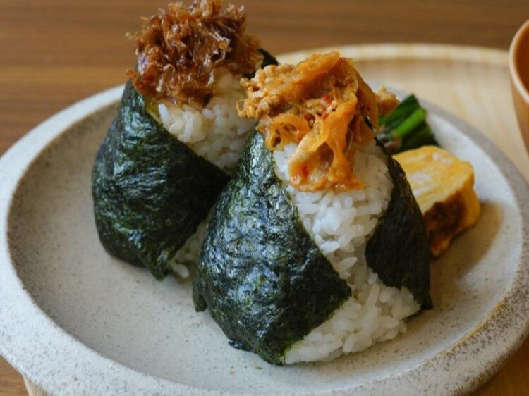 ▲定番メニューのおにぎり定食。具材は5種類から選べ、副菜と味噌汁がつく