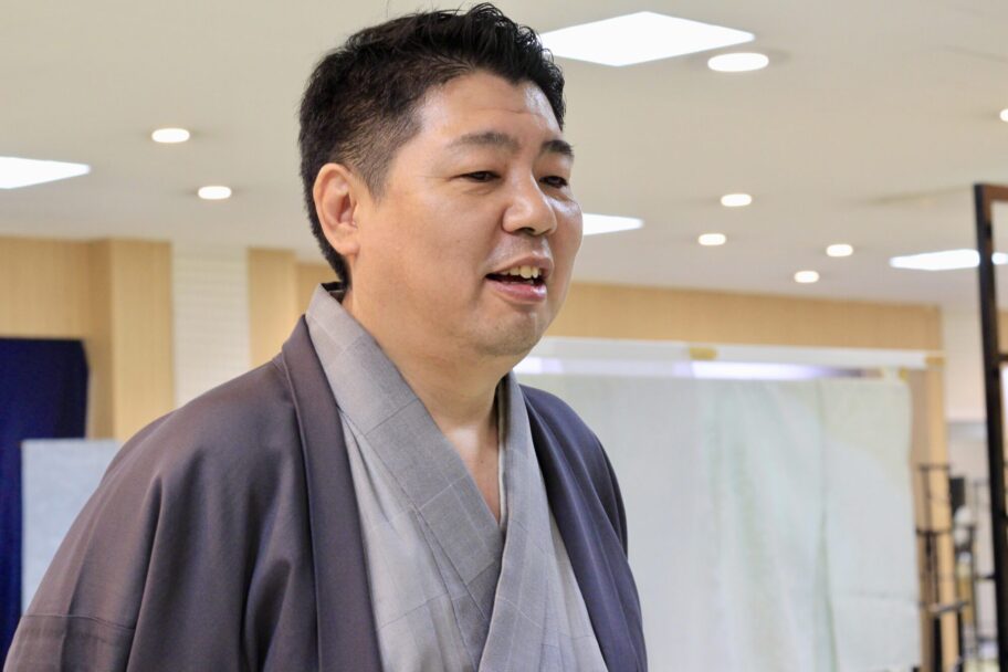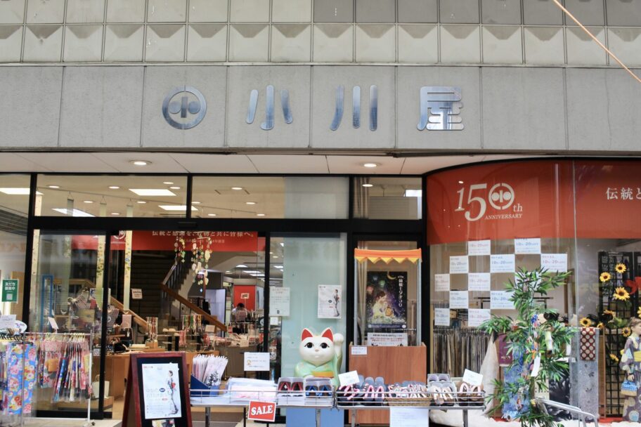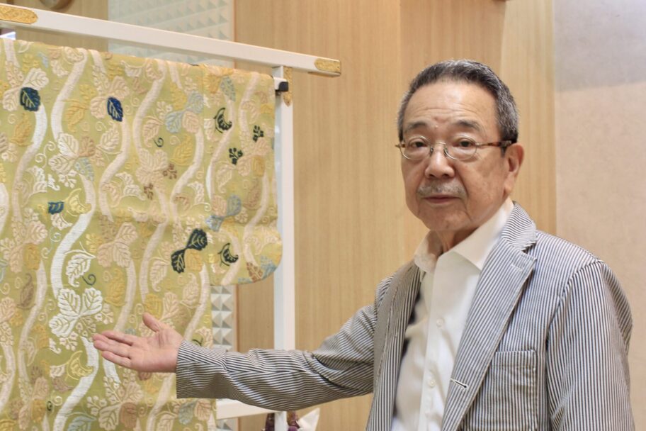 1875年創業の老舗呉服店、小川屋は7月4日から7日まで、150周年記念特別展示会を開く。京都を代表する織物の一流ブランド、創業230年の永井織物「永治屋清左衛門」に焦点を当てる。七代目、永井幸三郎さんの手掛けた復元品や所有する江戸時代の友禅小袖、代々受け継いできた千利休の掛軸など歴史的文化的価値の高いものを展示し、ブランドの反物や帯を販売する。小川屋社長、伊藤大介さんに見どころ、永井さん、永井織物常務の生末明さんに復元品について聞いた。