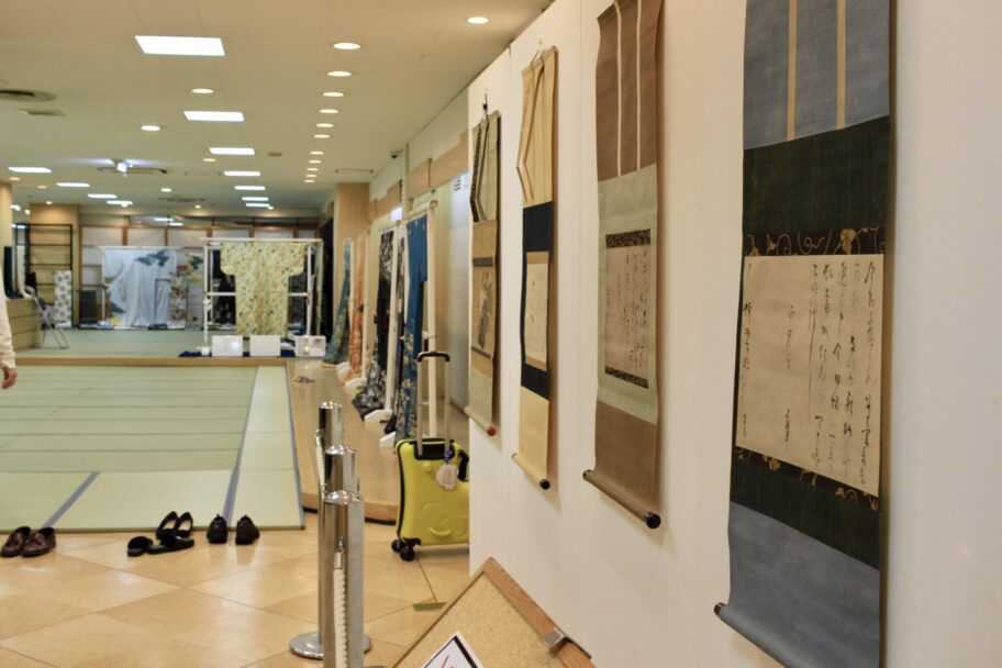 小川屋では永井織物の品物は今までも扱っていたが、今回のような大々的な展示会は初めて。永井織物としても、歴史的価値のある掛軸を展示するここまでの大きな規模のものは、東京を除く関東では初。