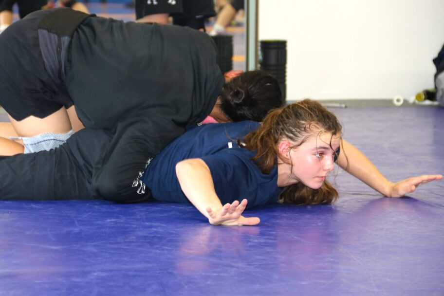 相手となる育英高女子レスリング部は昨年、1年生ながらインタハイで優勝した藤田眞妃琉選手をはじめ実力者ぞろい。スパーリングではテクニックで数段上の選手に封じ込まれている。
