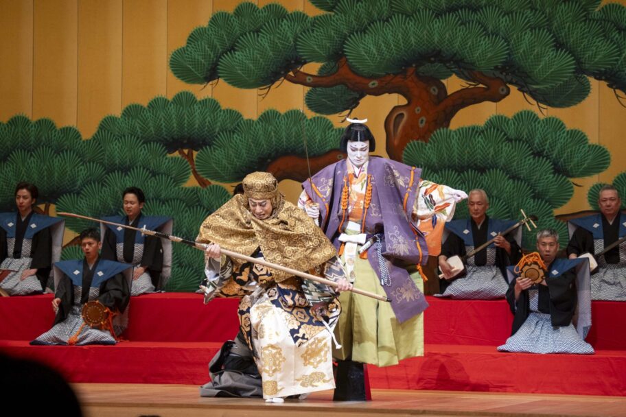 ▲息の合った演技を披露する弁慶役の幸四郎さん(左)と染五郎さん