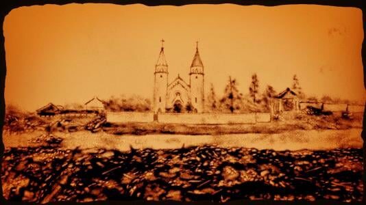あんじぃさんは初めて前橋空襲を調べ、奇跡的に教会堂が残った前橋カトリック教会を焼け野原の中に描いた映像を制作、提供した。