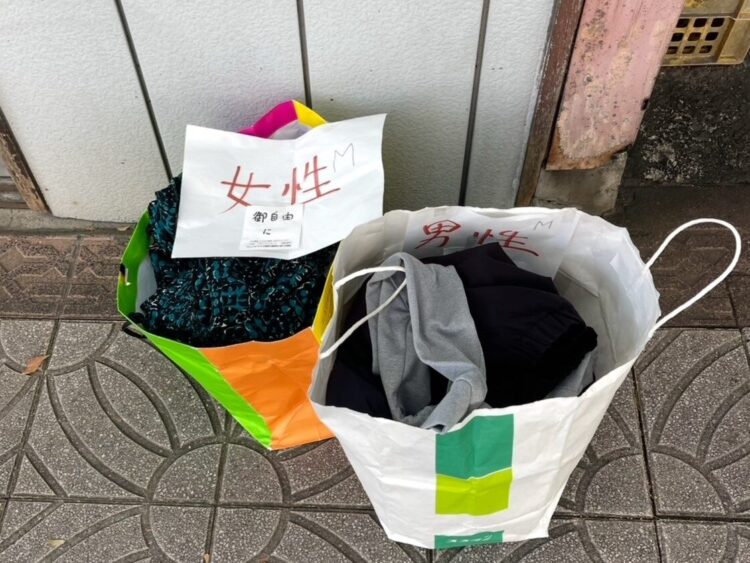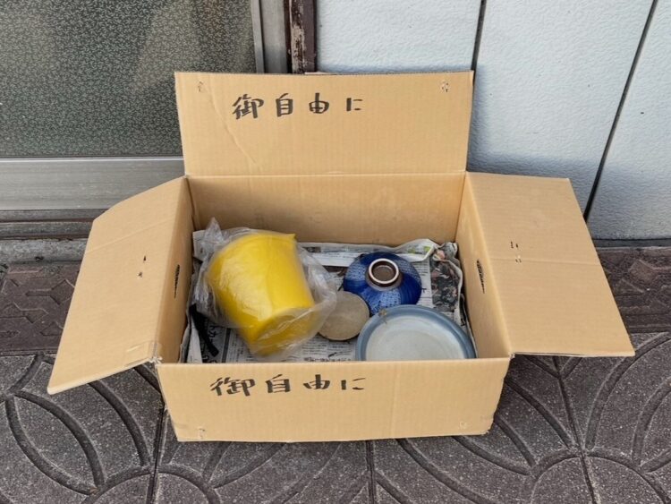 民家や店舗の前に、さりげなく置かれた段ボール。よく見ると、