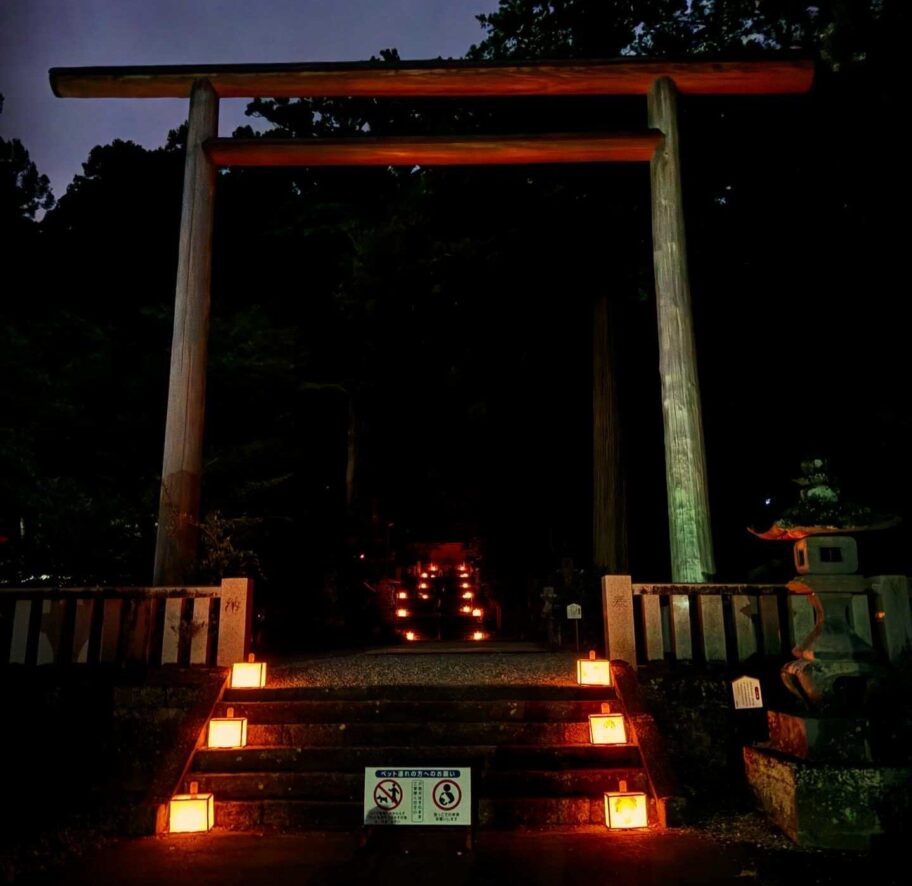 ▲灯ろうの優しい光が鳥居へと案内してくれる