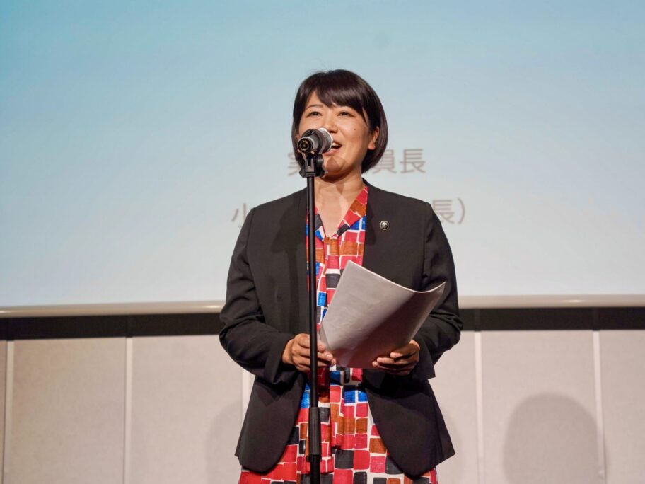 ▲ヘラルボニーのワンピース姿の小川市長