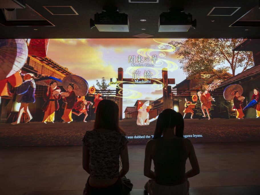 ▲ヒストリア前橋のシアターで田中さんの声を聞く
