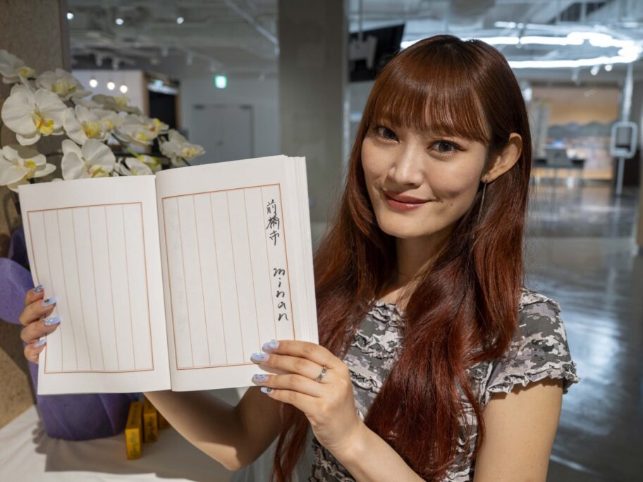 丁寧に記帳した後、展示物を熱心に見て回った。映画『プリティ・ウーマン』でジュリア・ロバーツ、『ハリー・ポッター』でハリーの母親、リリーの吹き替えをしたことを知ったminanさんは「どこかで聞いた声でした。有名な作品にたくさん出られていたのですね。すごい先輩であり、とても、素敵な女性ですね」と感心していた。