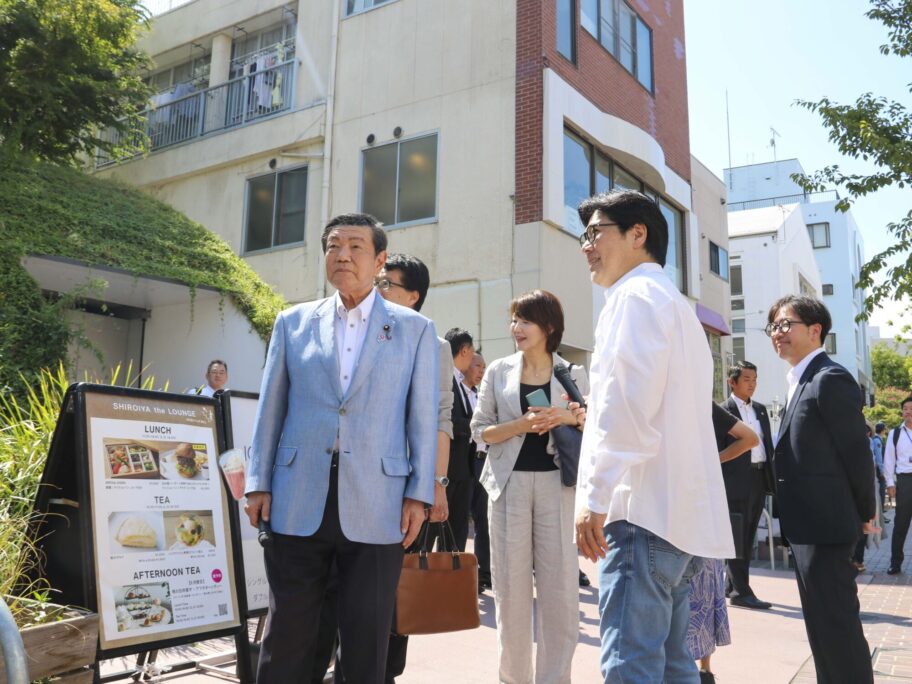 視察には石破茂首相直轄の「民による新たなまちづくり推進会議」の有識者3人が同行した。