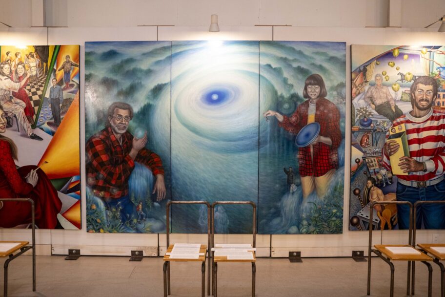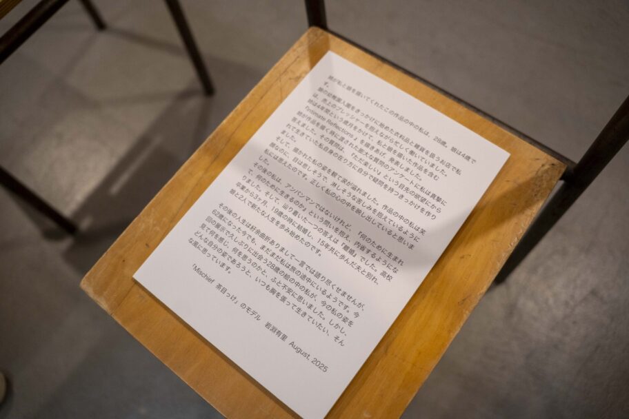 各作品の前には椅子が置かれており、座面にはモデルとなった人が現在の視点から寄せた言葉が記されている。制作当時の姿と、時を経た声が重なり合うことで、絵画は新たな意味を帯び、観る者に深い印象を残す。