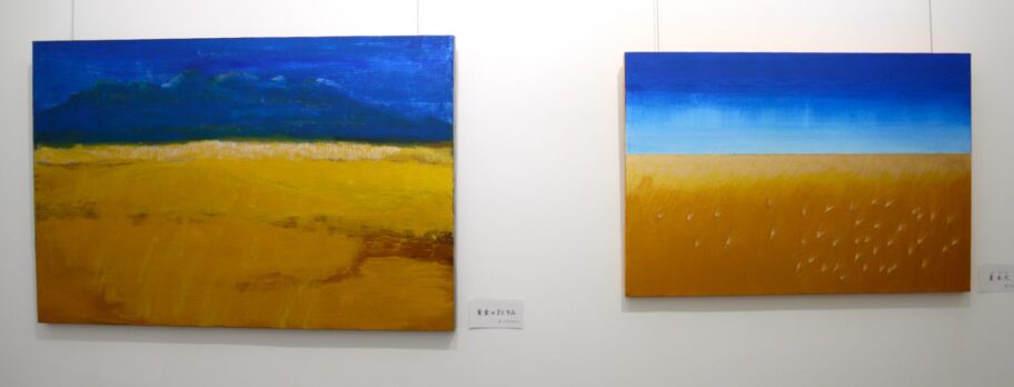 「麦禾火(むぎのぎひ)」は青い空と黄金色の麦畑がウクライナの国旗を想像させる。地平線をよく見ると、戦車の隊列のような描写があり、ロシアとの戦争を描いていることが分かる。