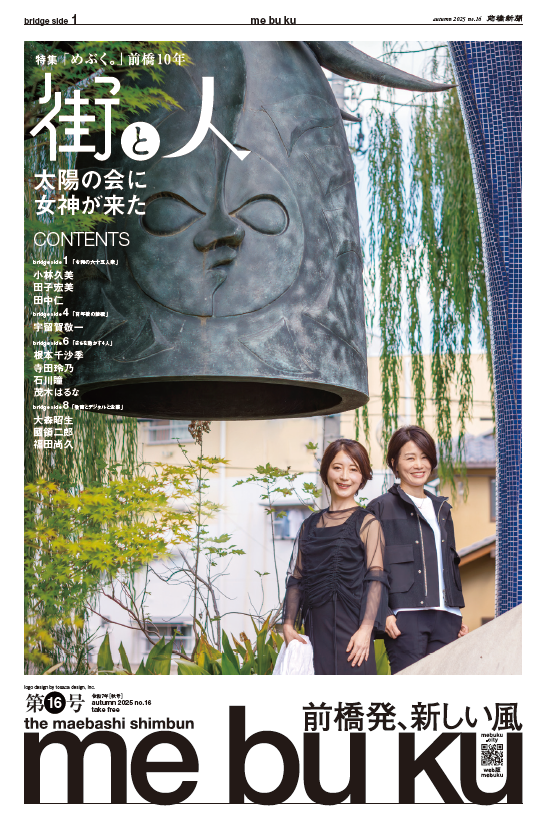 前橋新聞mebuku第16号を10月24日に発行します。テーマは「街と人」。2016年に生まれた前橋のまちづくりビジョン「めぶく。」が10周年を迎えました。10年の歩みを振り返りながら、街を動かす人々、支える人々の物語を取り上げます。