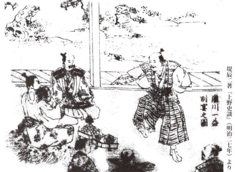 一益は、神流川合戦に敗れて本国へ帰る際にも、上野国の諸将を厩橋城に集め酒宴を開いた。一益が能『羅生門』の一節を鼓に合わせて「武士の交り頼みある仲の酒宴かな」と謡うと、倉賀野淡路守が能『源氏供養』の一節を「名残今はと鳴く鳥の」と返した。