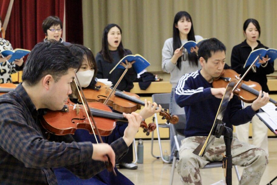 母体となった群馬大学メサイア管弦楽団・合唱団は、昨年53回目の公演を行った歴史あるサークル。ヘンデルのオラトリオ(宗教曲の一つ)「メサイア」を毎年12月に上演、OBOGも賛助出演している。4年前、2022年12月の公演後、打ち上げの場で萩原さんの発した「OBで集まって何かやりたいね」のひと言に、皆んなが賛同して一気に盛り上がった。現団長の中村昭彦さん(コントラバス)がまとめ役となり、翌2023年の4〜5月ごろから練習を始め、その12月に第1回演奏会を開催した。