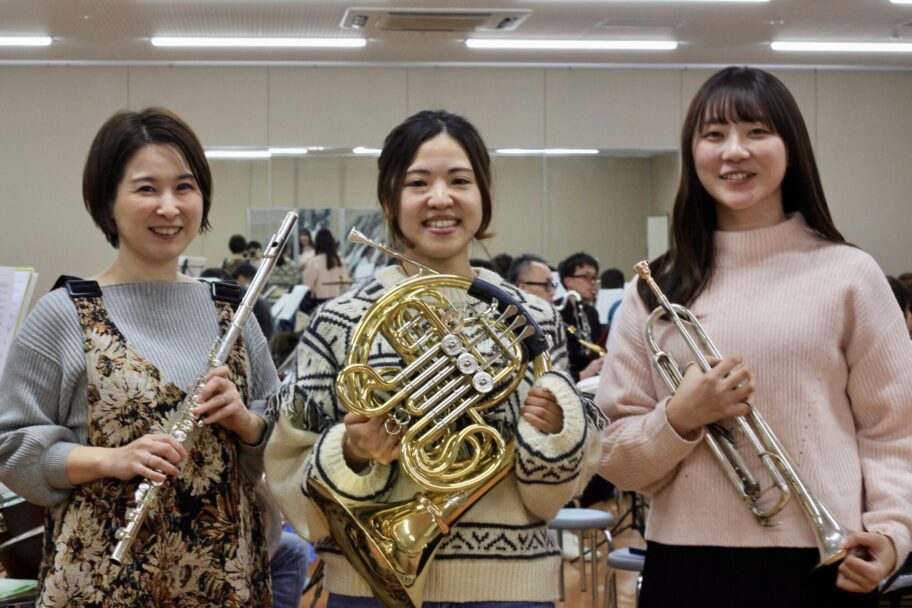 19回目となる定期演奏会。実行委員は大須賀結香さん(ホルン)、平瀬里美さん(フルート)、茂木杏樹さん(トランペット)のトリオ。