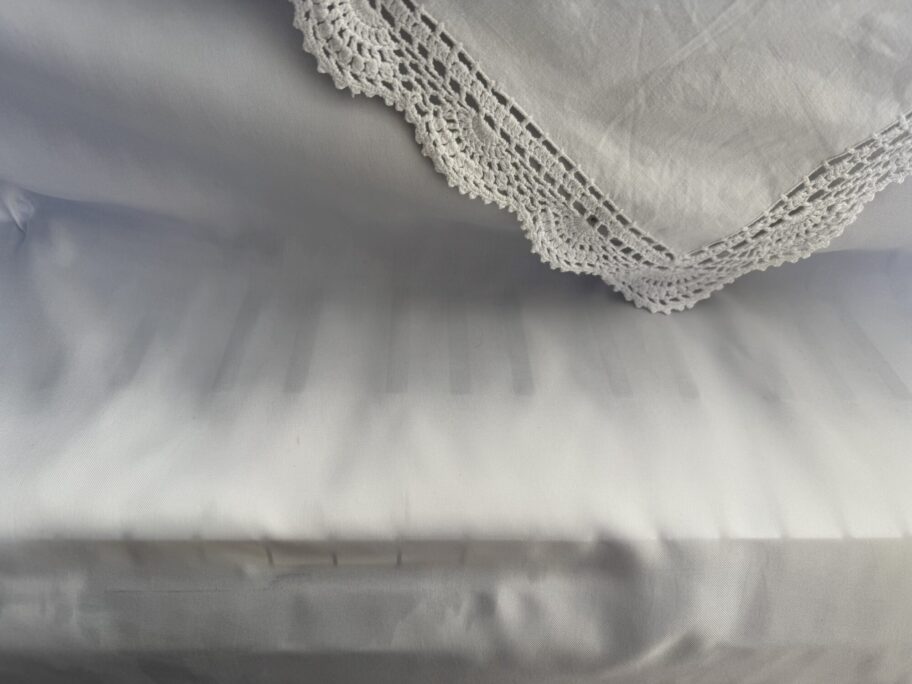 回廊の外周にあたるギャラリー3・4では、向井山さんの代表作《wasted》を再構成。経血で染められたドレスや靴、写真、家具などが通路状の空間に点在し、女性の身体や人生に刻まれた痛みと喪失が、個人的体験にとどまらず社会的な問題として立ち上がる。