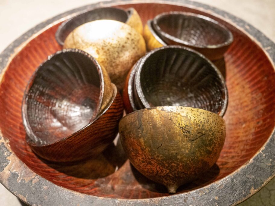 完成した「シン・フジワラボン」は6種類。それぞれに用途と表情がある。片山シェフの発想が強く反映されたのは、高台皿「uffe 卵(うっふたまご)」、こね鉢をそのまま縮めたような「フジワラ・ボウル」、そして「JO-GO 浄-合(ジョーゴ)」だ。