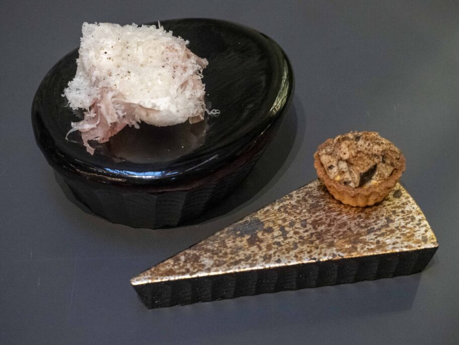 ▲シン・フジワラボンにひと口の前菜を乗せて