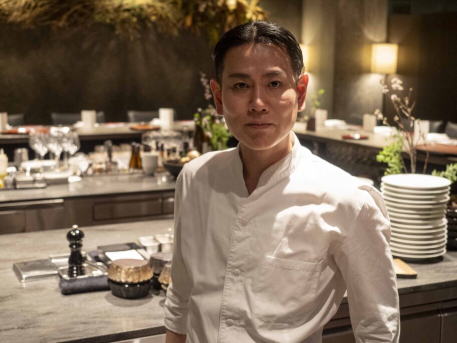 ▲「この器をザ・レストランで使っていきます」と片山シェフ