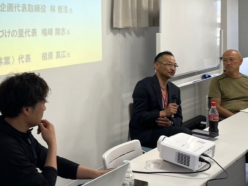 木をすべて切り落とす皆伐でなく定期的に間伐する持続的な自伐型林業を広めている檀原さんは植樹や間伐の体験のためにくる子供が多いことを指摘、「100年後、200年後に山を壊さないよう、熱く語っている。かっこいい林業をみせたい」と未来のプレーヤーに期待した。